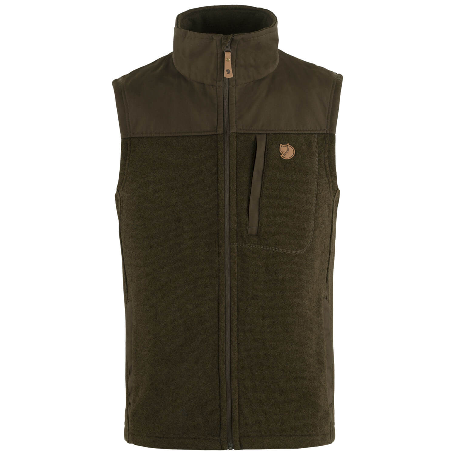 The Fjällräven Buck knitted fleece waistcoat in green is a high-quality, quiet and pleasantly warm hunting waistcoat. Thanks to the soft fleece on the inside, it is perfect for stalking, hunting or as an intermediate layer in winter.