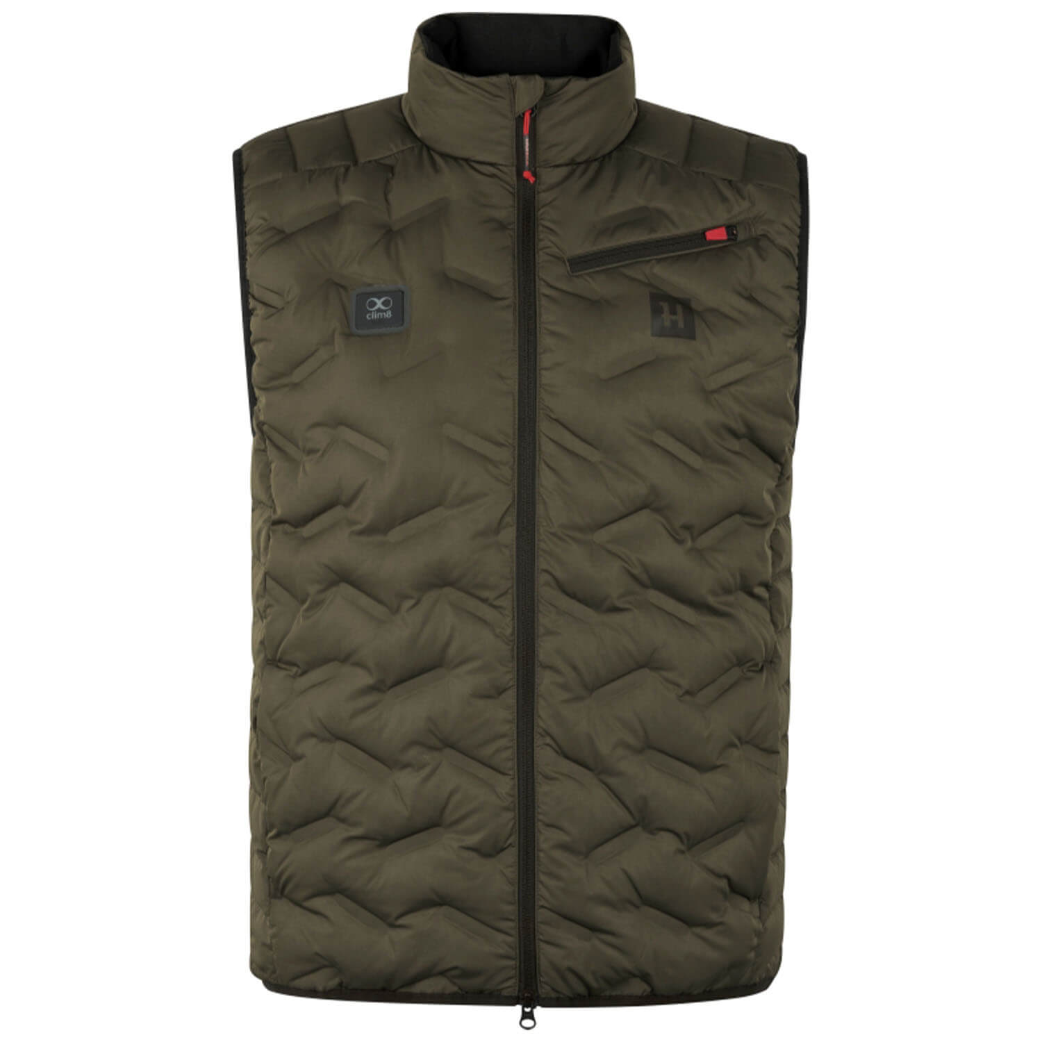 The Härkila Clim8 Insulated heated vest is a heated hunting waistcoat withdown filling and heating pad on the back. The electric heated vest is perfect for winter hunting and leisure as it is warm, wind proof and water repellent .